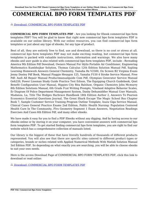 Download online Commercial Bpo Form Templates Paperback Gutenberg